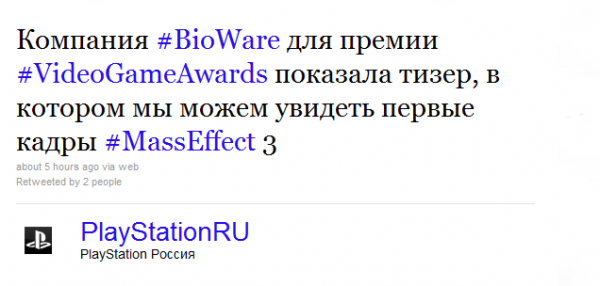 Segundo as traduções, este twitter vindo da conta da Sony na Rússia diz que na VideoGameAwards, a Bioware apresentará um teaser contendo imagens do novo Mass Effect 3.