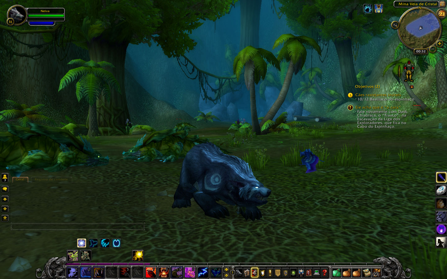 Mudei meu personagem de humana para elfa druidesa. Além de atacar a distância com magias (algo beeem útil quando não se consegue ainda controlar direito o personagem), também posso virar gata, tigre, ursa e peixe. Futuramente poderei ser pássaro.