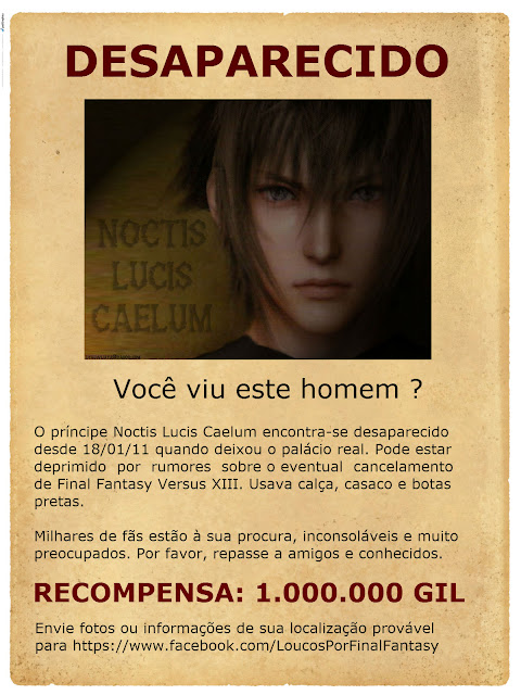 Vejamos. Participem. Curtam, compartilhem, postem fotos ou mensagens bem humoradas sobre localizações possíveis de Noctis.