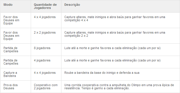 Quando o modo multiplayer de God of War: Ascension foi anunciado, muitos torceram o nariz, afinal, em uma aventura solo como a de Kratos não haveria lógica em um modo com outros personagens. Mas ao contrário de outros fiascos, como no recente Tomb Raider, o multiplayer agrada bastante. Ele conta com os seguintes modos: