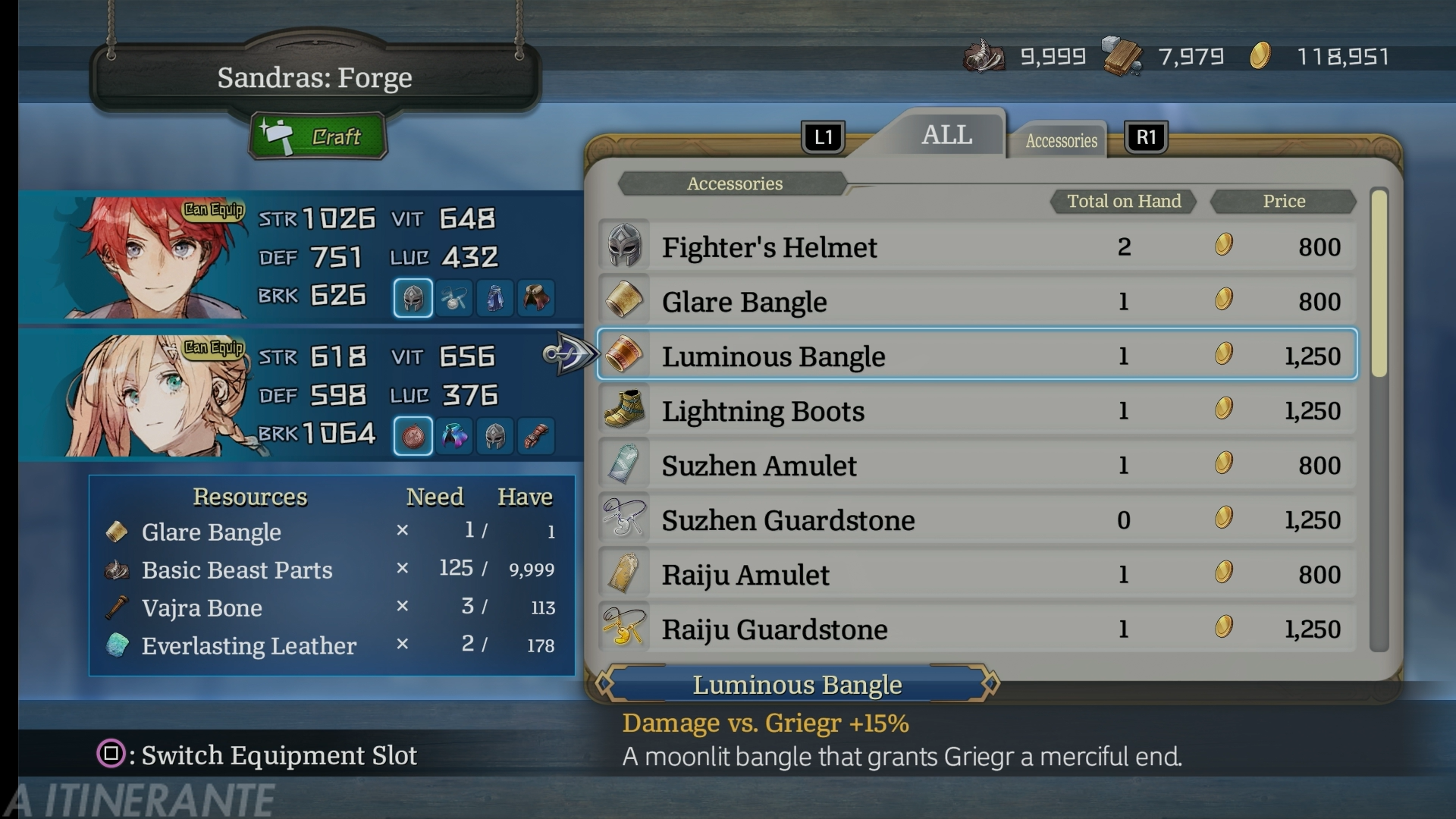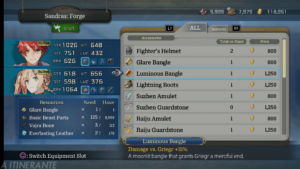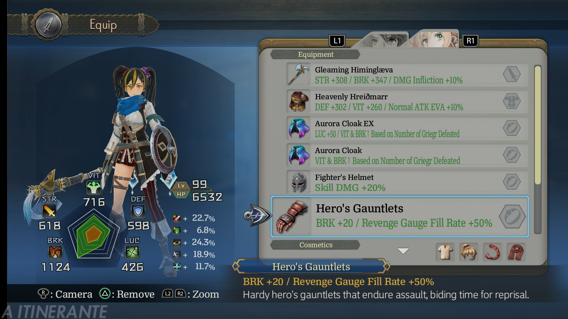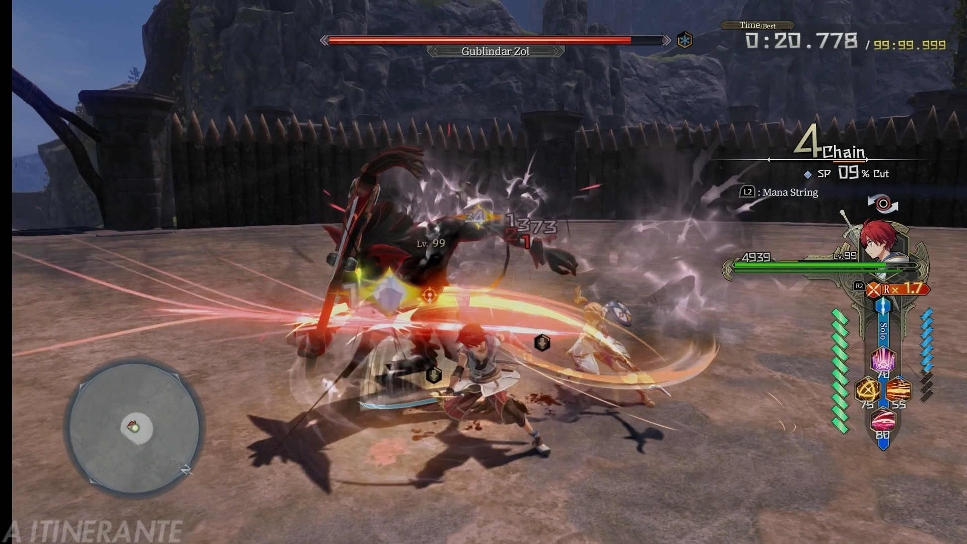 Por isso, uma boa estratégia é especializar seus personagens. A Karja funciona muito bem focada em break damage, enquanto o Adol pode ser otimizado para dano direto, focando em força e sorte. Dessa forma, você alterna entre eles conforme a necessidade da luta.