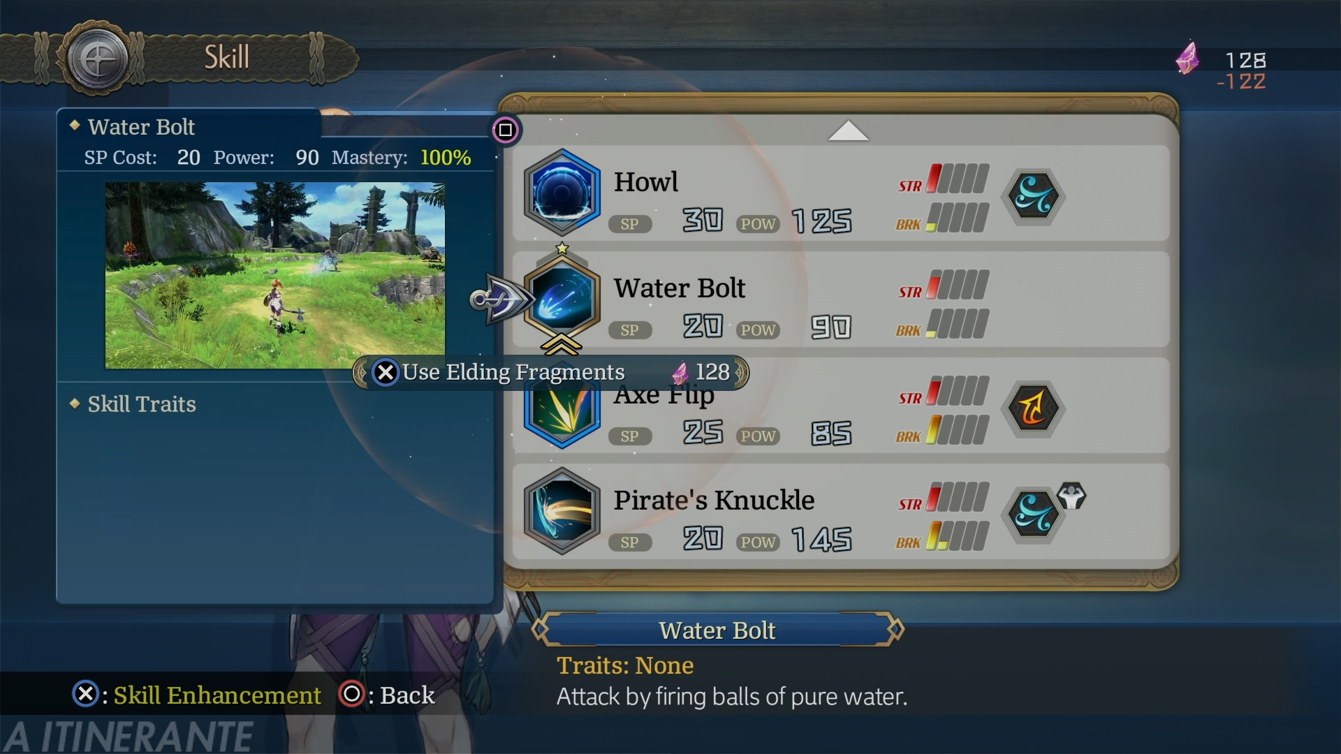 E pra masterizar, você tem duas formas: a primeira é o jeito natural, usando a skill repetidamente em combate. A segunda é utilizando os Eldin Fragments, que permitem masterizar habilidades muito mais rápido.