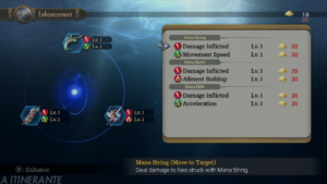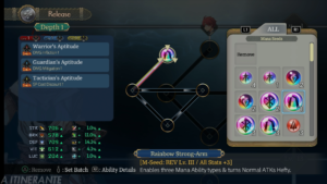 Mas o detalhe mais importante é que, ao montar sua build, se você alcançar três linhas vermelhas nas release lines, seus ataques passam a aplicar efeitos como queimadura ou congelamento após o uso do Mana Burst.