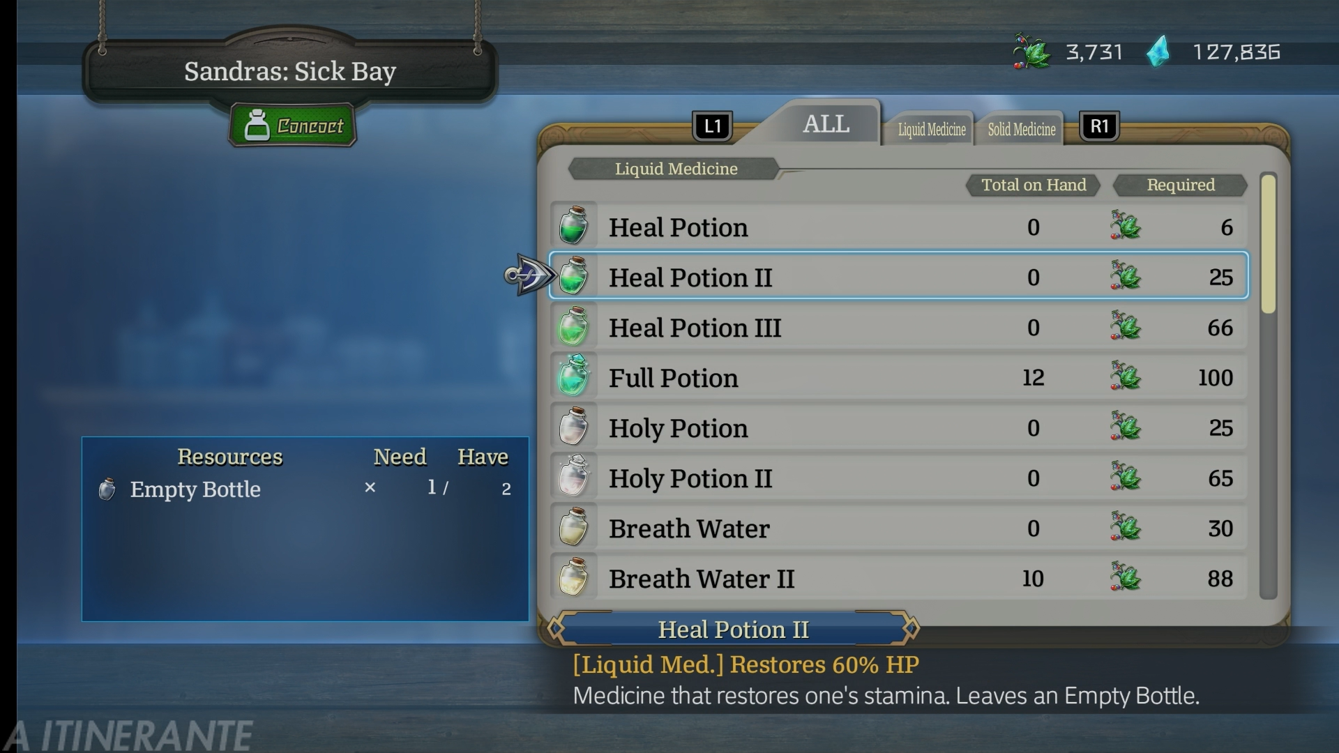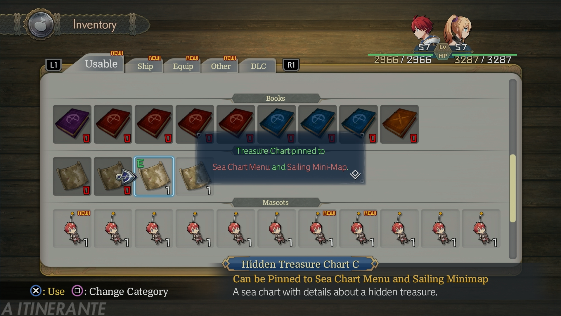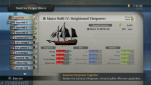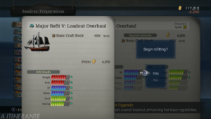 Saindo um pouco do combate, não se esqueça de cuidar do seu navio. Conforme você avança na história, os inimigos no mar ficam mais fortes, e se você não melhorar o Sandras, as batalhas podem se tornar bem mais difíceis.