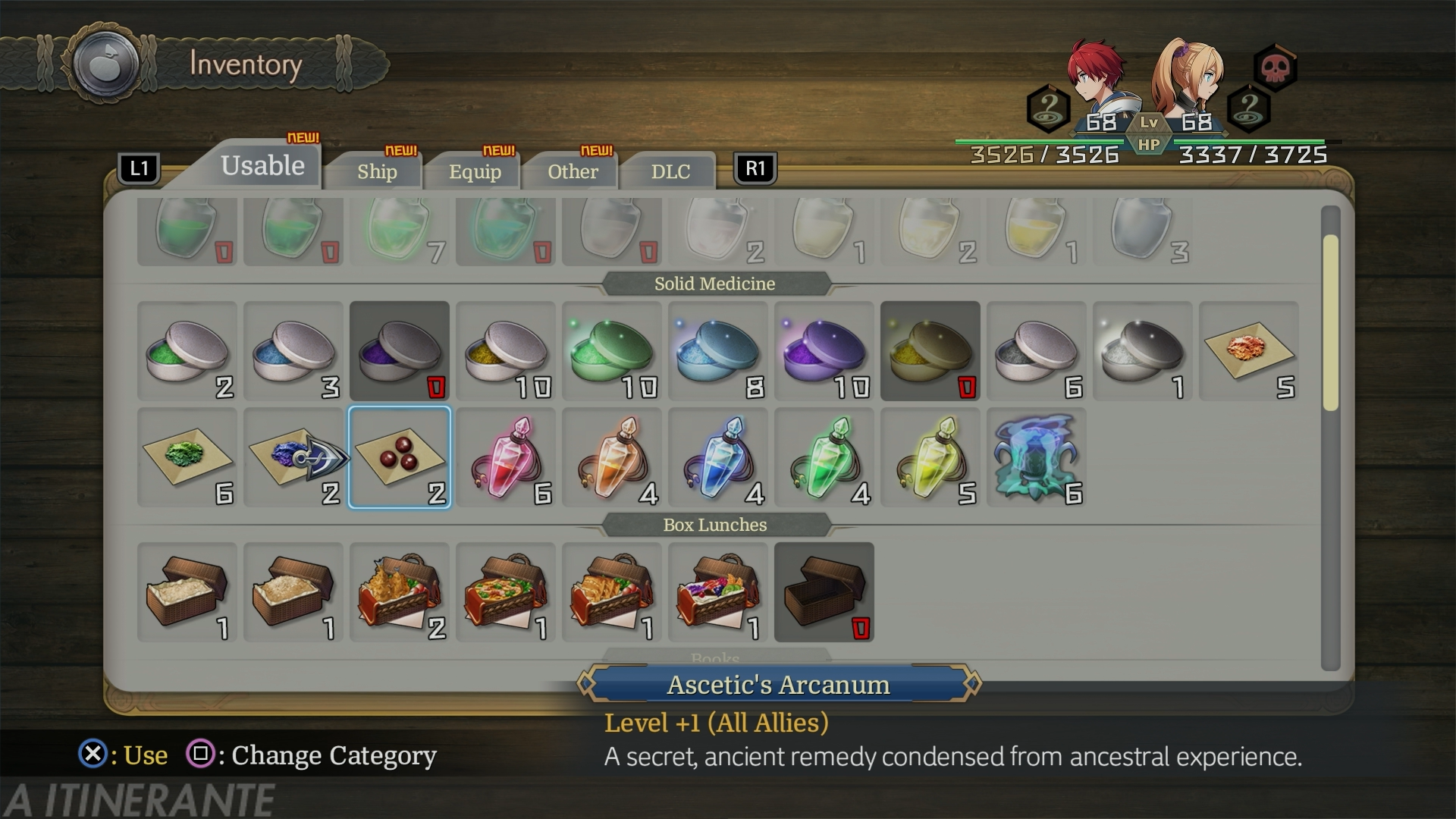 Outra dica importante é sobre os itens de experiência. Aqueles que dão EXP direta podem ser usados sem medo, quanto antes melhor.