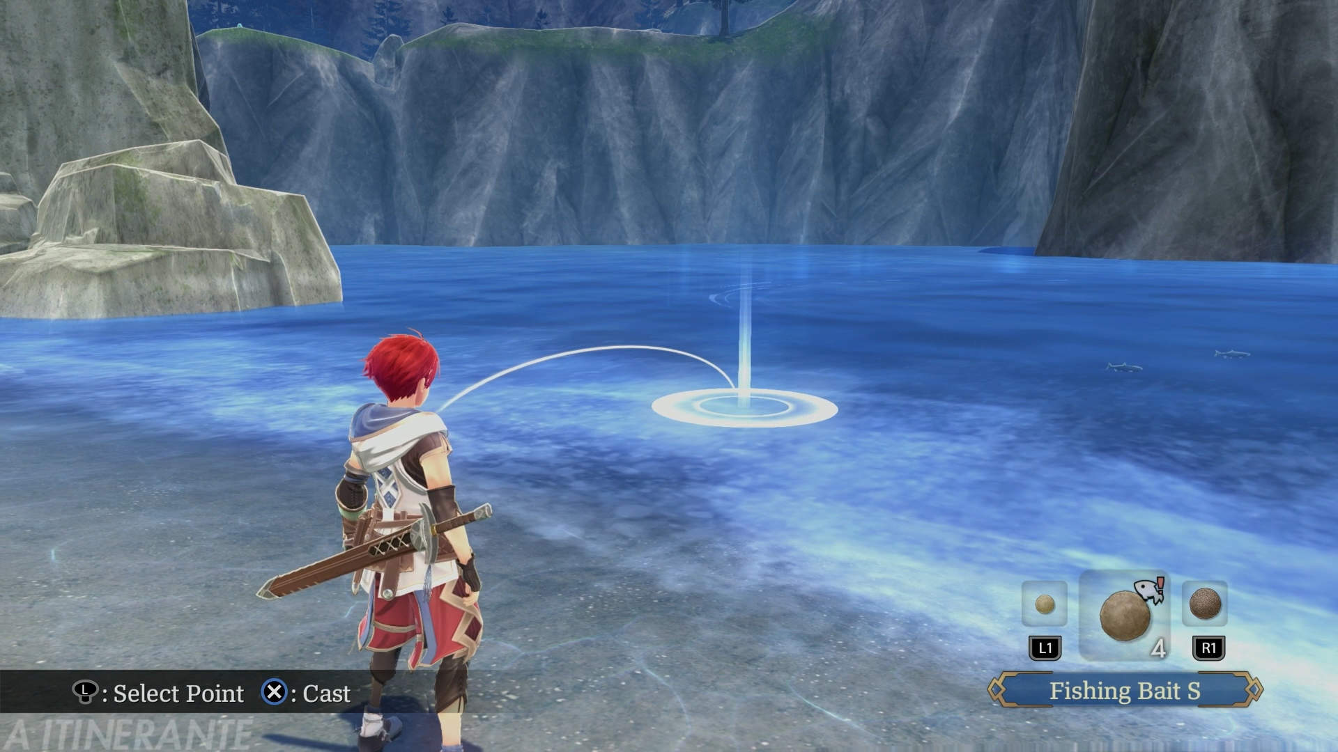 Pra quem quer completar tudo, a pesca também é importante. Ao escolher iscas, se aparecer um ícone de exclamação, significa que aquele peixe ainda não foi descoberto.