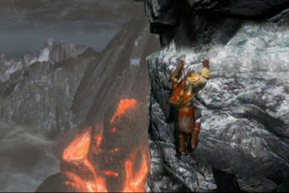 Puxe uma seta para trás, e veja como Helio voa em sua carruagem de fogo. Quando ele chegar perto o suficiente, deixe uma seta soltar para atacar de surpresa a sua trajetória de voo e ajudar o Titan. Helio cai na terra em algum lugar, então pule fora e volte um pouco para trás. Harpias agora pairam na área; use-as para atravessar o fosso para o outro lado. Liquide os inimigos e passe pelo portão. Siga pelo corredor congestionado e atravesse a ponte para a escada.