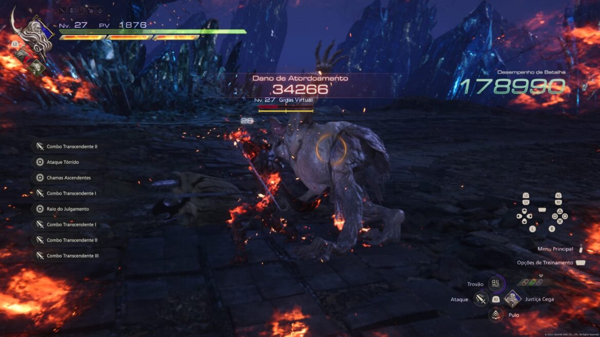 Para evitar que no meio do combo você precise trocar de Eikon, você pode, por exemplo, masterizar a habilidade Cataclismo de Titã para equipá-la em um dos Slots da Garuda (ou vice versa) de forma que você tenha as duas habilidades que precisa disponíveis no mesmo Eikon.