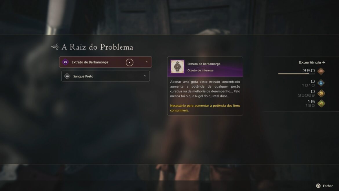 Por fim, basta retornar ao esconderijo e entregar as flores para Nigel, que irá te recompensar com o Extrato de Barbamorga, que aumentará a quantidade curada pelas suas Poções e Superpoções, assim como aumentará a duração dos seus tônicos.