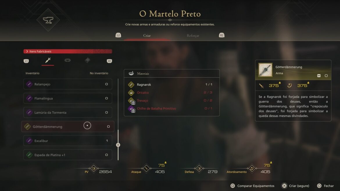 Tendo todos os itens em mãos, basta retornar a Blackthorne e finalmente criar a poderosa Götterdämmerung, a arma mais poderosa da sua primeira jogada em FF XVI.