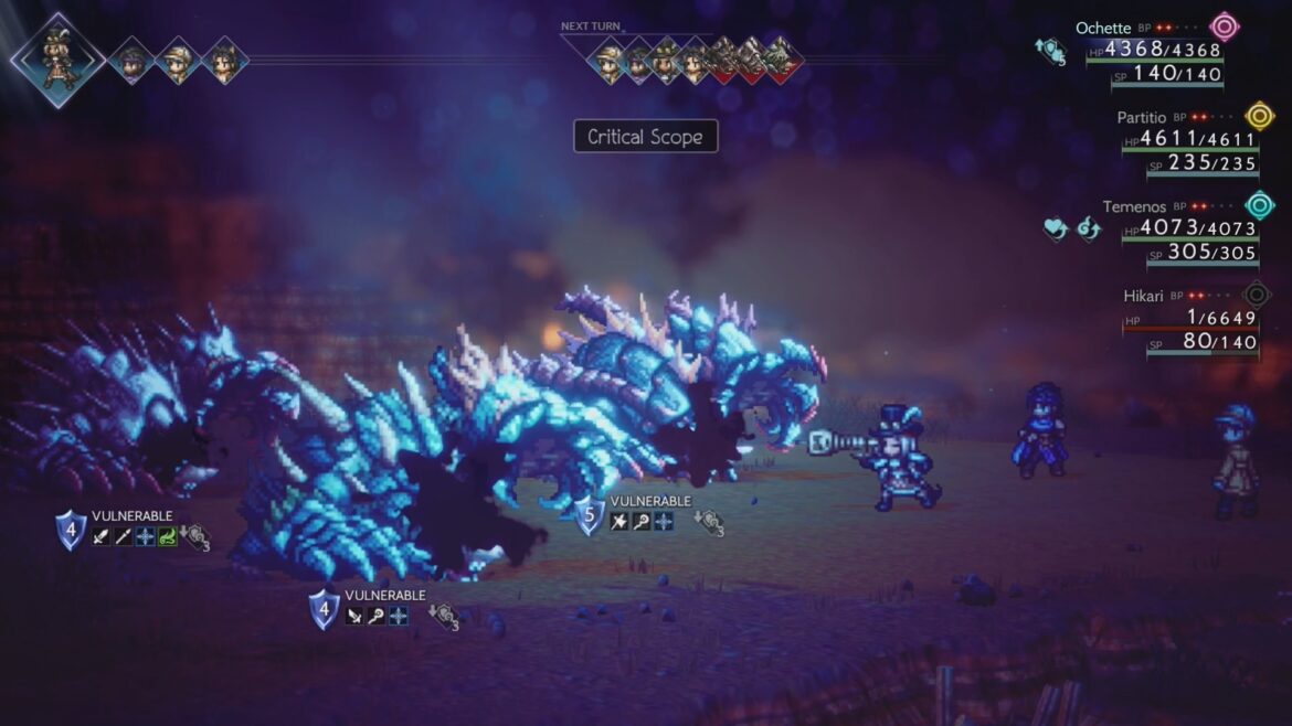 Todos os ataques a um inimigo selecionado causarão dano crítico pelos próximos 4 turnos.