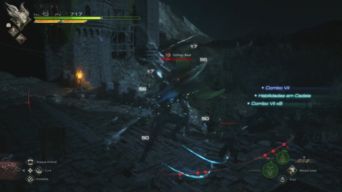 O combate de Final Fantasy XVI começa relativamente simples, mas na medida em que mais Eikons e habilidades são adicionadas ao arsenal de Clive, conseguimos enxergar o potencial de profundidade e complexidade que ele nos apresenta.